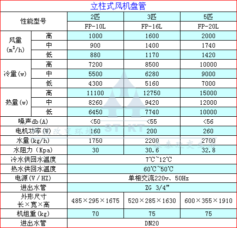 立柜式风机盘管(水温空调)三种规格 此机型有以下特点 ★采用新型铝肋片与高传热效率铜管设计,二次翻边及涨管工艺,制冷、散热效果好。 ★造型雅致俊美,扁薄苗条,结构紧凑,豪华。 ★采用全新的多元化微电脑控制,配遥控器。 ★大屏液晶显示,操作极为方便。 ★除具有制冷、制热、除湿等运行功能外,还有自动和人工选择运行及自动和人工设定温度和选定温度,安全,节电。 ★采用轻触键控制,具有先进的多功能控制系统。 俗称水暖空调为适应南方地区用不很凉的地下水制冷也能获得理想的制冷效果,造就了家电化的高效水温空调器。挂壁式立柜式水温空调冷水制冷热水供暖,既有家用空调的豪华气派、微电脑恒温自控遥控操作任意调节室温的先进功能,又有中央空调的舒适特性,是采暖设备的一场技术革命,给现代生活带来质的飞跃。 水暖空调蒸发器比一般空调制造要求更高用料更多换热能力更强,能最大限度地利用水温,从而能使空调出风温度接近于水的温度,夏天用17℃井水制冷能将室温降到22℃左右,同样水温条件下比一般水温空调制冷效率提高一倍;冬天用30℃以上的热水供暖也能把室温升温20℃以上,与风机盘管使用7℃冷冻水和暖气片使用80℃以上热水相比是空调生产史上的重大突破,四小时一度电.和电风扇差不多. ★家庭楼寓用户----替代暖气片 美观、节能、又省钱! ★家庭农村用户----夏天井水制冷 凉爽、省电、更省钱! ★冬天水炉制热 暖和、高效、亦安全! ★纺织厂、服装厂等人口密集型企业 ★饭店、宾馆、商店、网吧等服务业店铺 ★学校、幼儿园、医院、办公室等行业 ★养鸡厂、养牛场等特种养殖厂 ★花卉大棚、苗木大棚等特殊种植厂产品规格: 1、按形式分:有立式柜机空调和挂式空调两大系列十余个型号。 2、按功能分:有单冷型和冷暖双用型。